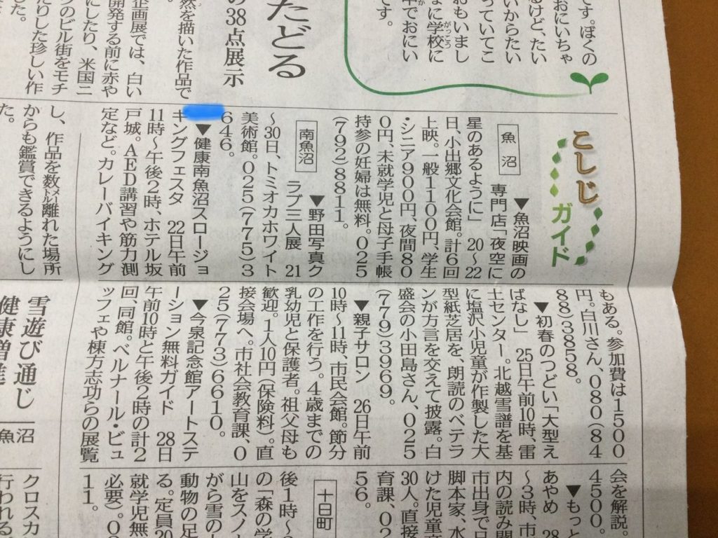 雪国新聞に載りました!