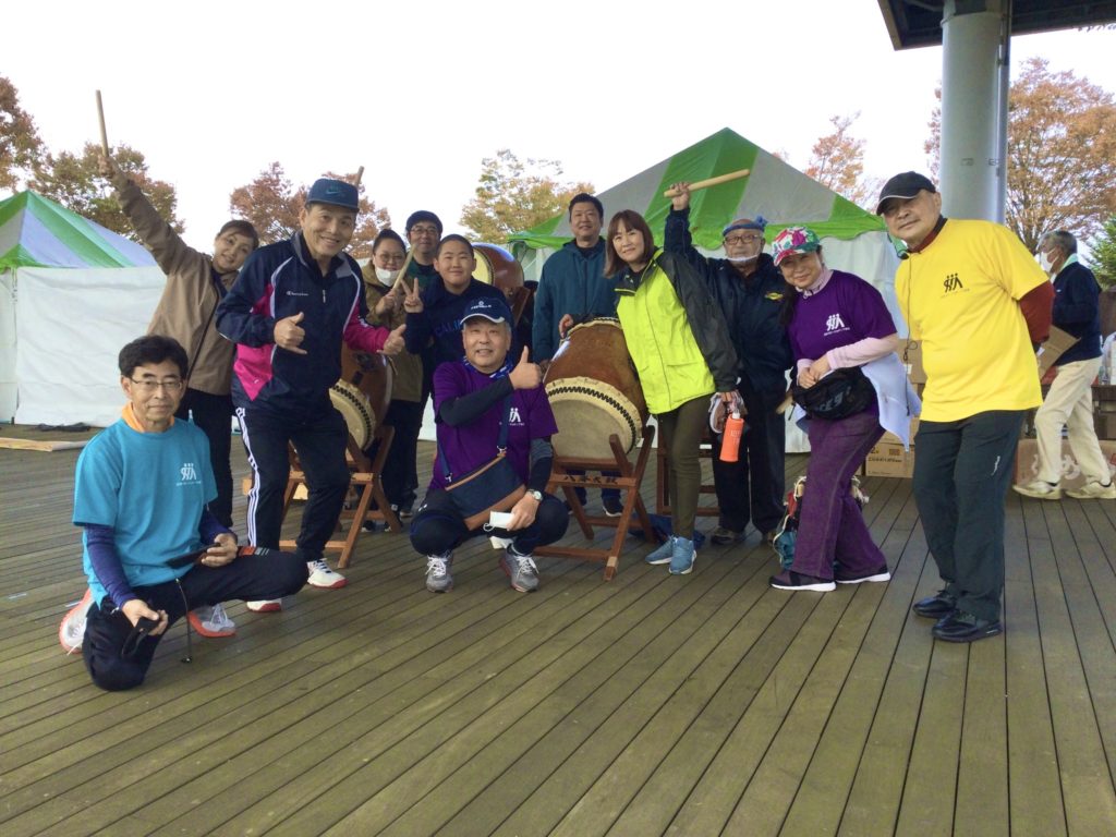 八色の森公園でスロージョギング体験会 『雪国秋フェス』に出演準備中の八海太鼓 メンバーの皆様とも記念撮影 楽しく、そして凄〜く気持ち良かったので 一周1kmコース、2周もしちゃいました〜