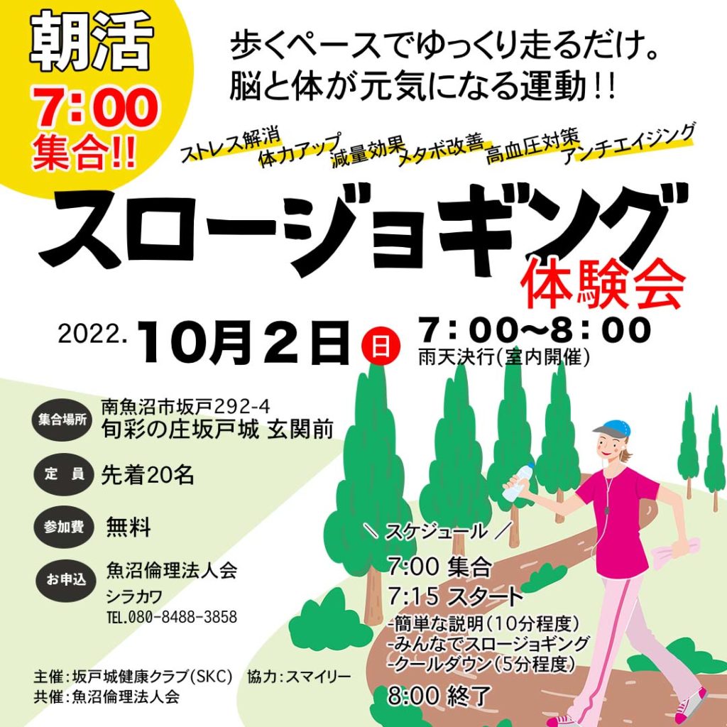 次回10/30(日)の「スロージョギング体験会」は『雪国秋フェス』の開催される八色の森 公園に場所を移して8時からおこないます http://urx.blue/0gC1 ←10/23(日)の様子 皆さ~ん、 参加していた […]